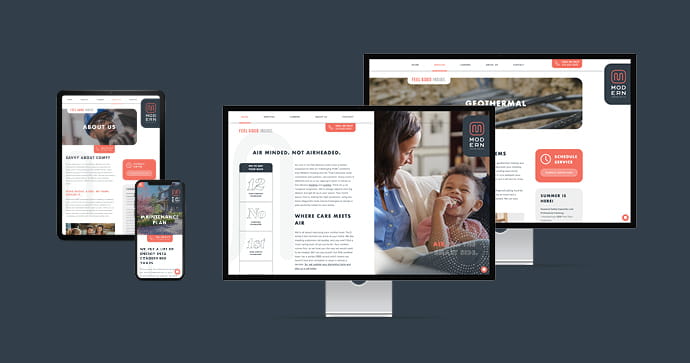 We determined the best way to help a ‘modern’ brand stand out was to incorporate a modern look, which, to be honest, made our client a bit nervous. The brand look and feel intentionally strayed from the typical HVAC blues and reds and our clever messaging was infused with a fun, approachable personality. Everything was tied together with the comforting tagline: 'Feel Good Inside'.