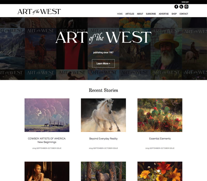 With new ownership, Art of the West Magazine was seeking a new web design that would also take the manual off line burden of managing subscriptions, renewals, and ultimately product sales, and leverage the speed and efficiency of an online solution.