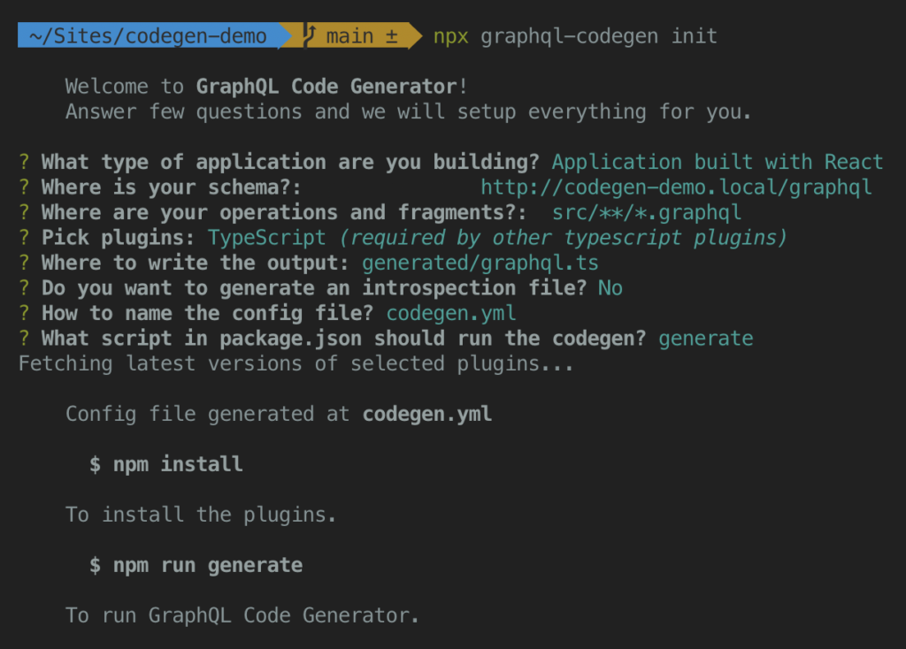 codegen.ymlconfiguration file based on your answers - Add a few NPM packages to your