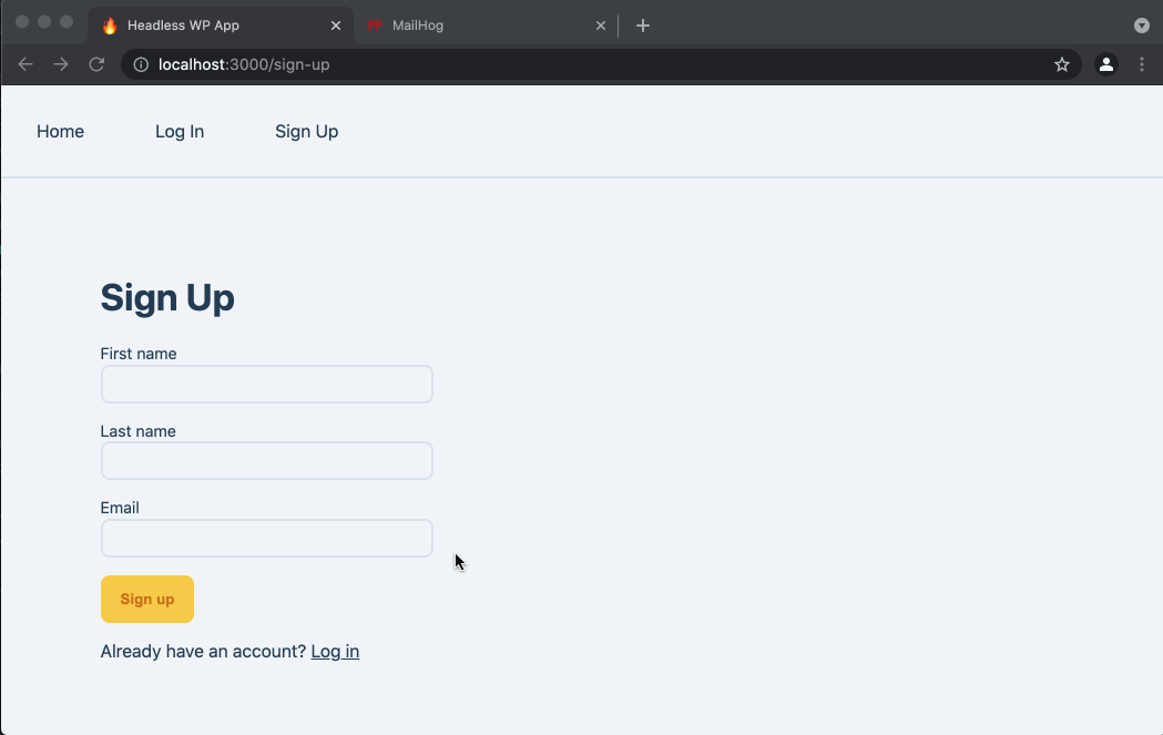 .env.localfile inside of the app’s root folder. Open that file in a text editor and paste inNEXT_PUBLIC_WORDPRESS_API_URL=https://headlesswpcookieauth.local/graphql, replacingheadlesswpcookieauth.localwith the domain for your local WordPress site. This is the endpoint that Apollo Client will use when it sends requests to your WordPress backend. - Run