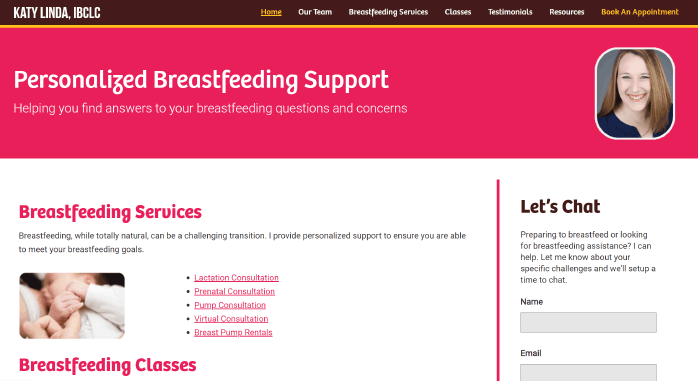 This custom design was done for a Baltimore based lactation consultant. Built with lead capture in mind, this site incorporated the full brand via fonts, colors and other visuals to guide visitors to request an appointment.