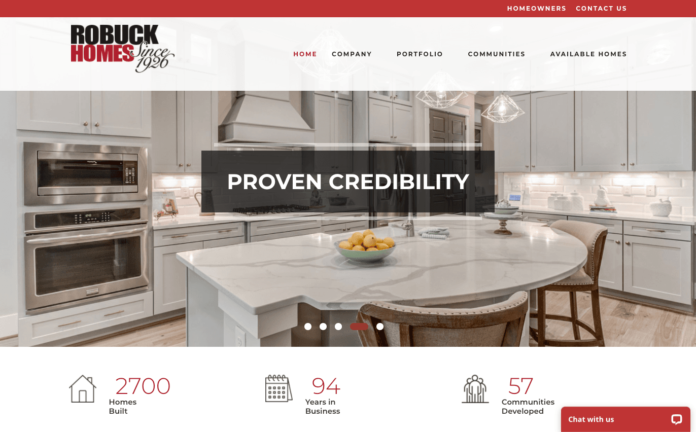 We developed the full website for Robuck Homes www.robuckhomes.com. This website integrates with the MLS system to showcase real-time home listings. We also show real-time listings of open houses.