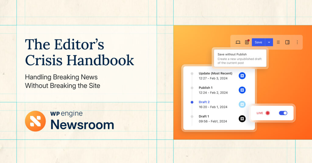 WP Engine Newsroom includes the Live News feature to streamline online publishing during these moments, and help ensure your reporters and editors can get breaking news out as quickly as possible without compromising quality.