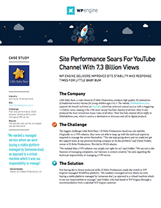 Now on WP Engine, Little Baby Bum no longer struggles with the ins and outs of server management. Find out how WP Engine helped Little Baby Bum go from a shaky site to rock solid performance.