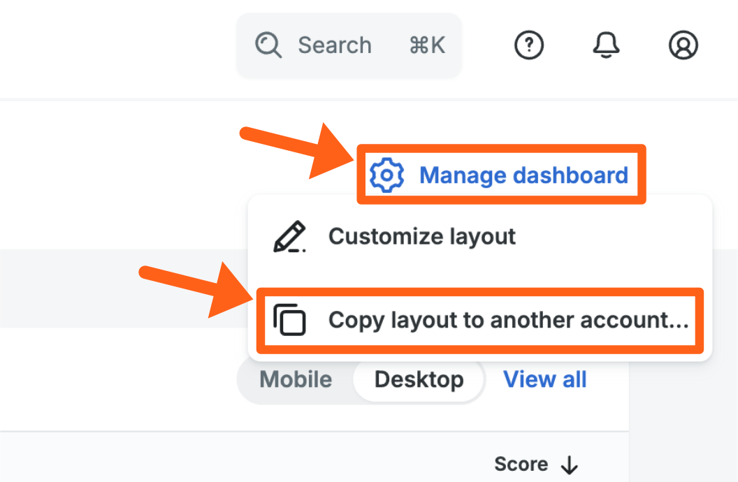 - Go to the Dashboard page and use the account switcher at the top of the left sidebar to select the account that you want to copy.