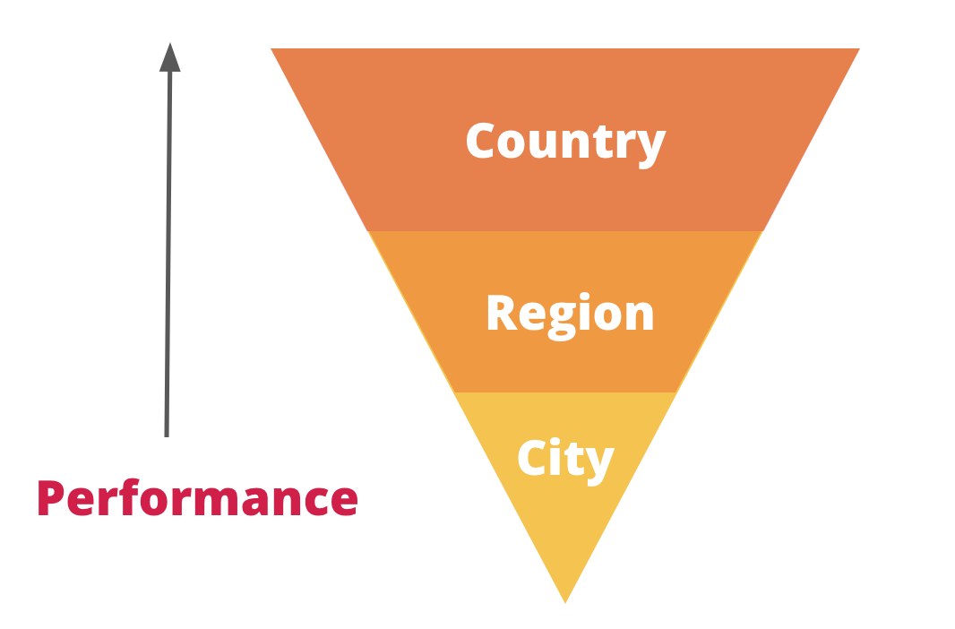 The more specific and granular the bucket, the more segmented your cache will be. The more cache segments, the less effective cache is. This will impact performance as your traffic scales. Wider geographic buckets are best for both cacheability and scalability.