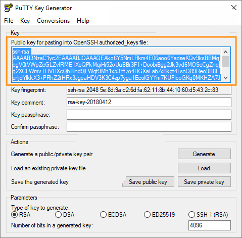 - Open the PuTTYgen utility to generate an SSH key