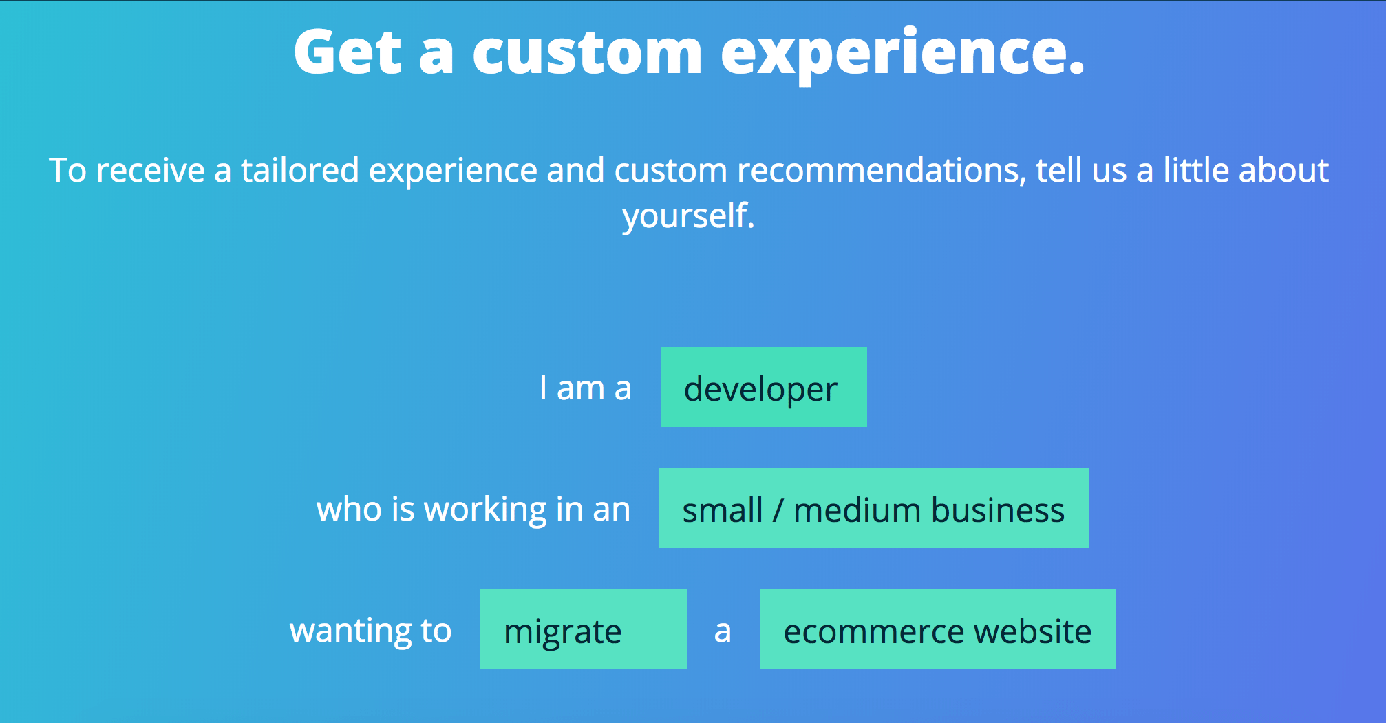 On the homepage, you could select whether you are a developer or marketer, and what size company you are from: