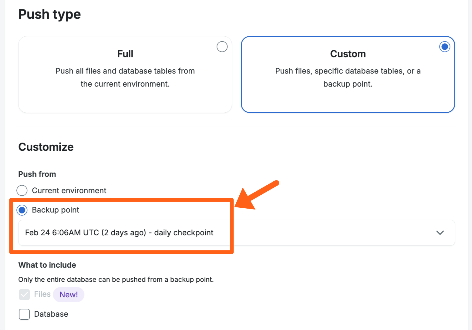 Daily backup checkpoints are made automatically, but if you’re planning to make updates to your site you will typically want to make a fresh backup checkpoint before proceeding- just in case you need to quickly revert the change.
