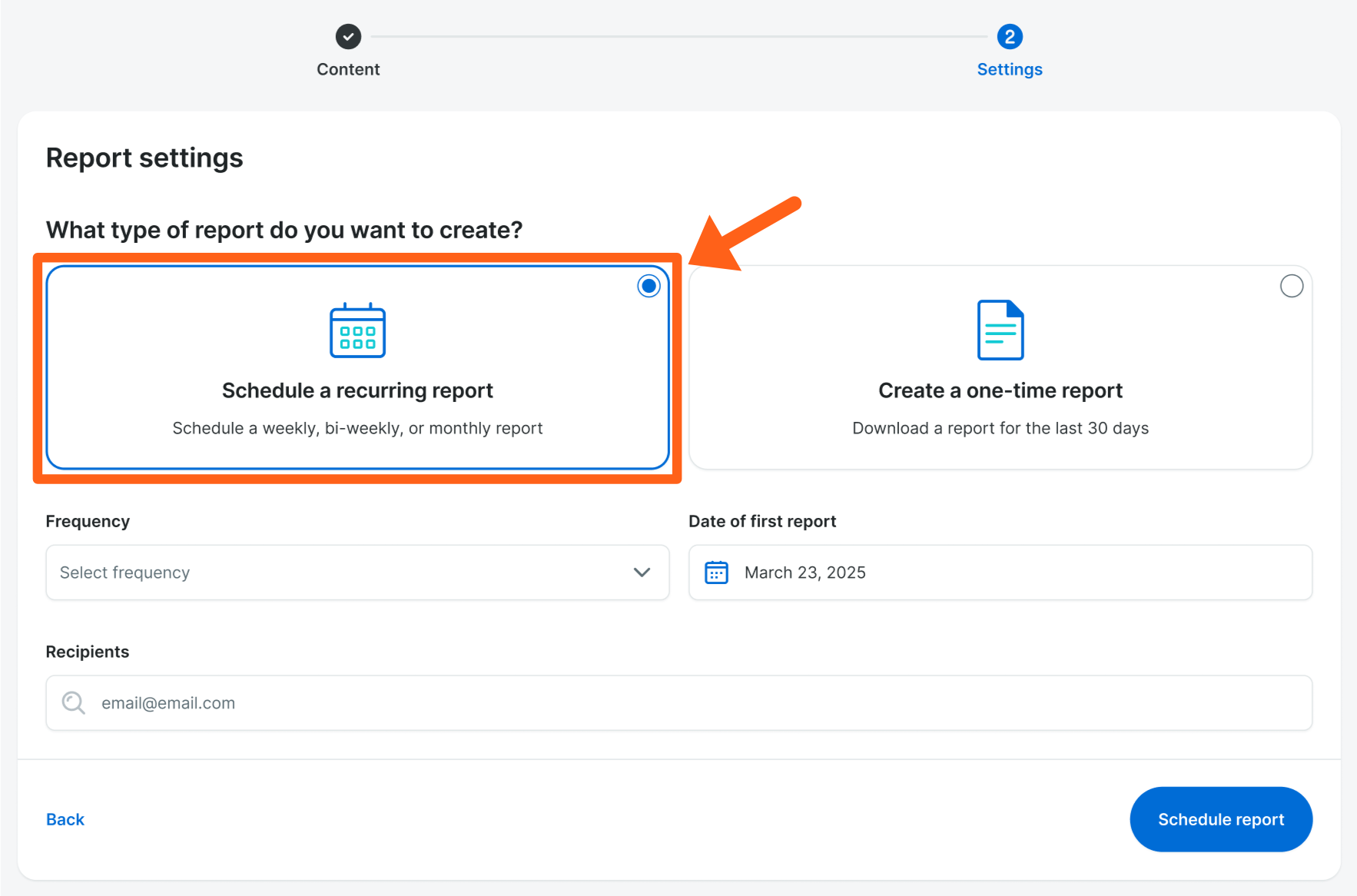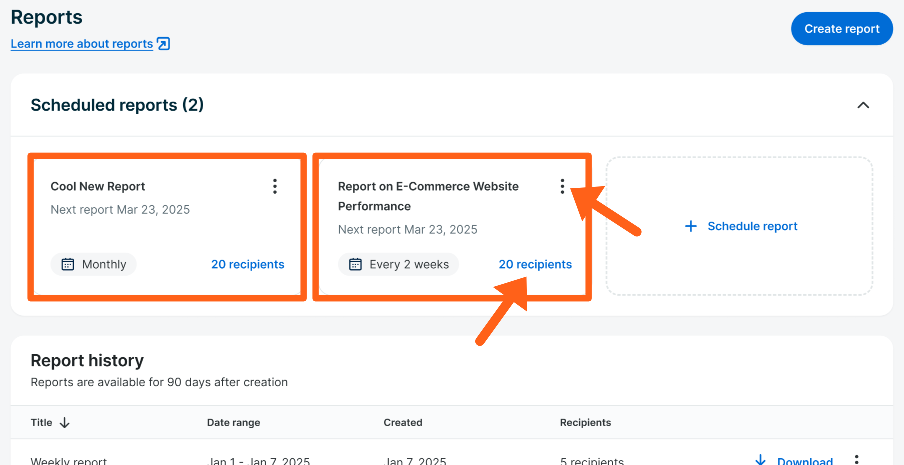We’ll be adding the ability to edit scheduled reports in late 2025 which will enable you to change your settings without having to recreate the scheduled report.