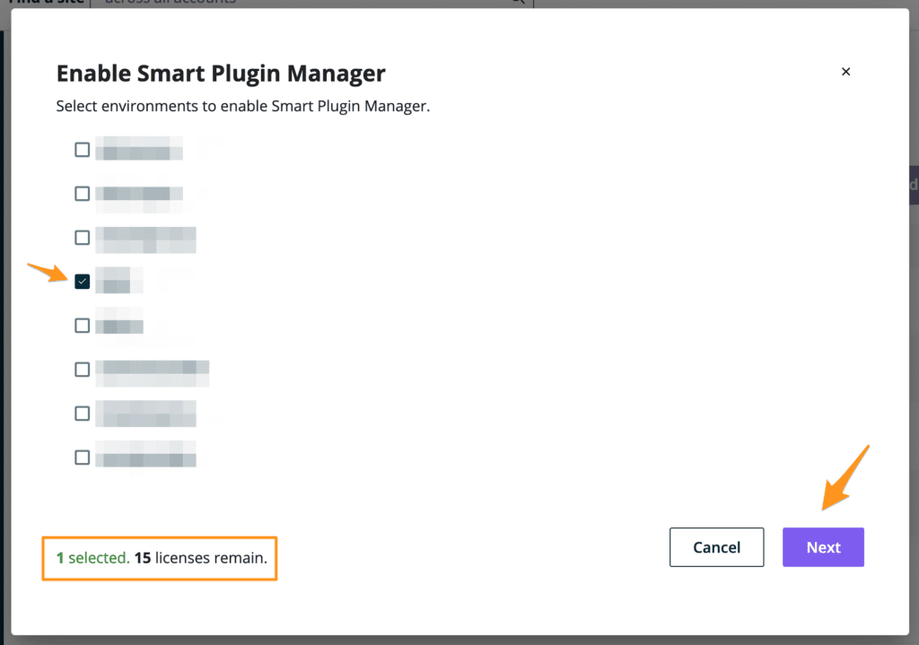 - Select any environments you’d like to enable Smart Plugin Manager on