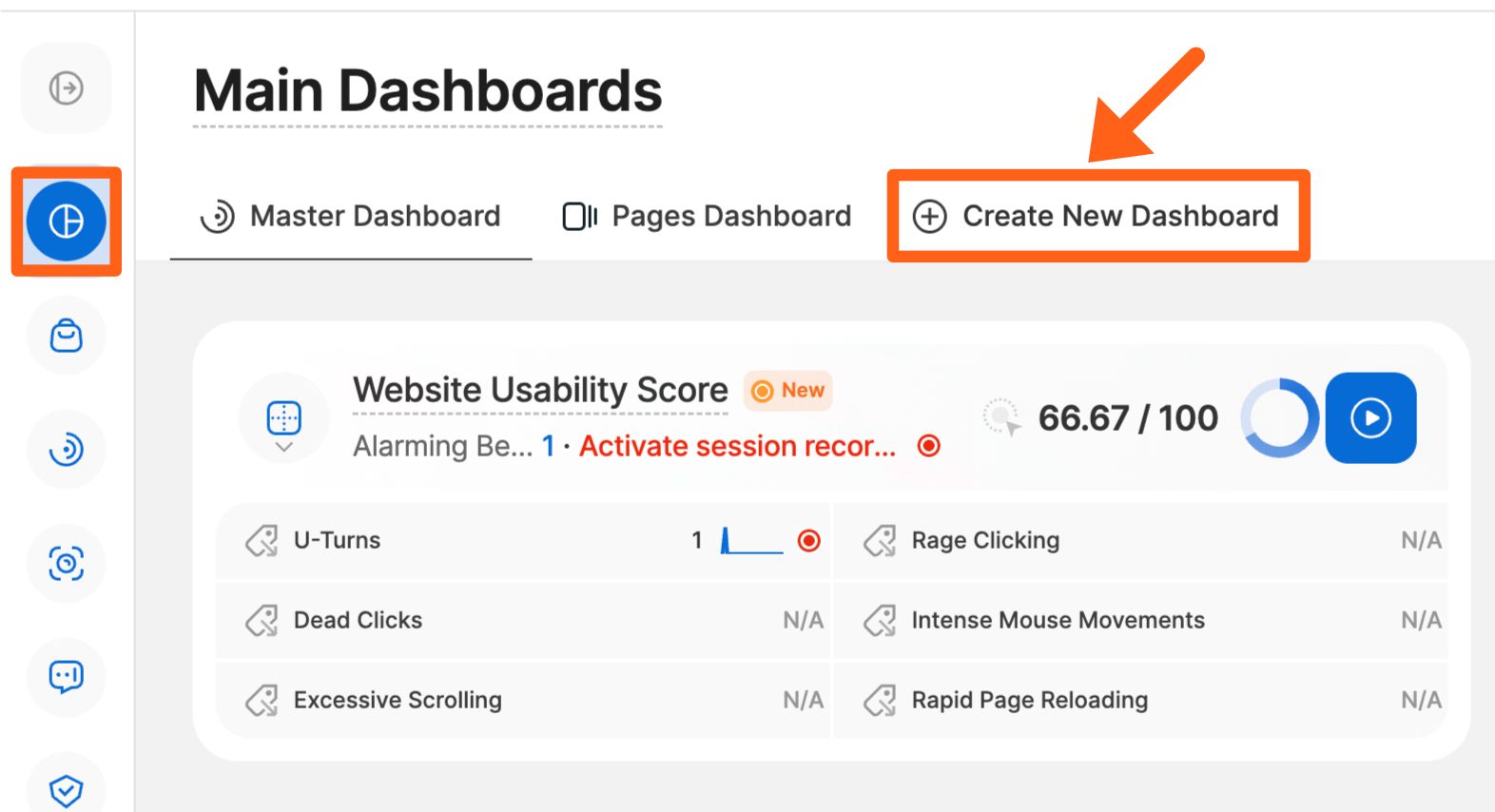 Create a new dashboard by going to Main Dashboard > Create New Dashboard, in the analytics dashboard.
